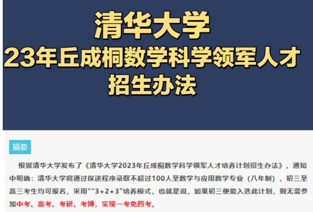 图为清华大学2022年丘成桐数学科学领军人才培养计划招生办法